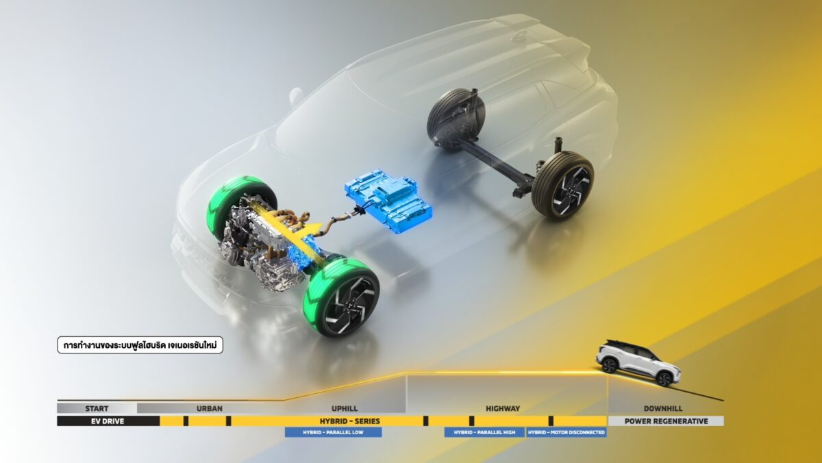 此外,XForce HEV的鋰電池組位於底盤中間,而非安置於後座下方或是行李廂底部,馬達最大輸出為116匹、26公斤米,引擎最大輸出為107匹、13.7公斤米,同時提供多達7種駕駛模式,包含Charge充電模式、EV純電模式、Normal標準模式、Wet濕地模式、Gravel碎石模式、Tarmac公路模式、Mud泥濘模式。其中Charge充電模式可強制充電,EV純電模式將會關閉引擎、維持馬達驅動,雖然XForce HEV一樣只有前輪驅動,但在AYC主動式彎道動態控制系統的輔助下仍可提升過彎穩定性、應付非鋪裝地形。