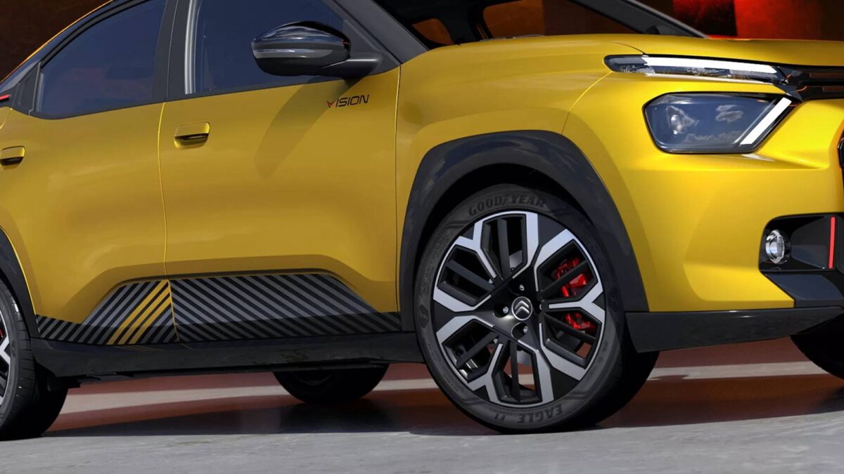 本次展出的Basalt Vision概念車承襲2024年首次公布的設計原型,但整體風格更加明確地朝向「性能化外觀」靠攏,Citroën為此將車身高度明顯降低,並換上雙色調的18吋運動化鋁圈、配置紅色卡鉗,營造更強烈的制動性能視覺效果,相較於標準市售Basalt的16吋輪圈與較高底盤設定,這次Vision概念車顯得更貼地、更具跑車風格。