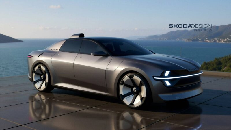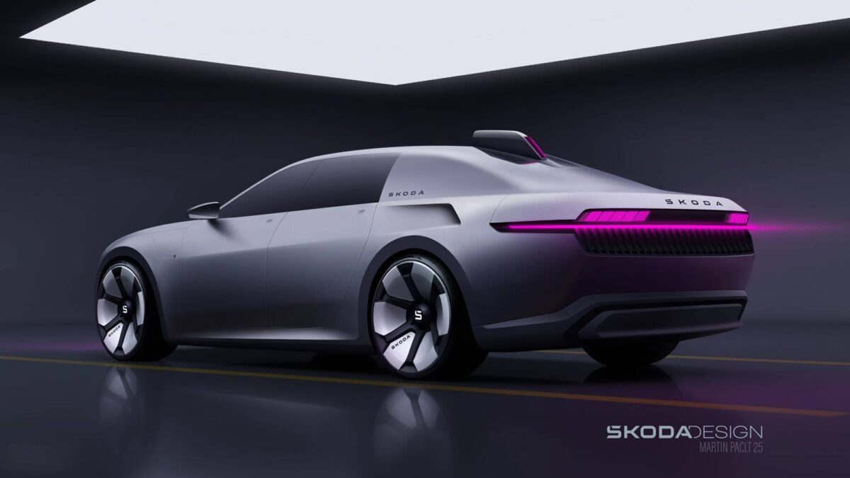 Paclt在重新詮釋時,以現行Škoda Superb的車身比例為靈感來源,因此新概念車尺寸略大於原始車型,也比萬能房車Octavia更具旗艦氣勢,車頭採用四元素頭燈、刻劃鮮明的引擎蓋折線、中央Škoda字樣以及貫穿式光條,向昔日的鍍鉻飾條致敬,車側保持簡約與延展的視覺比例,短前懸設計則呼應過去後置引擎的結構概念,即使現代詮釋採電動化平台,也保留這項經典特色,整體線條流暢、面積完整且形體紮實,使車身散發接近豪華房車的份量感。