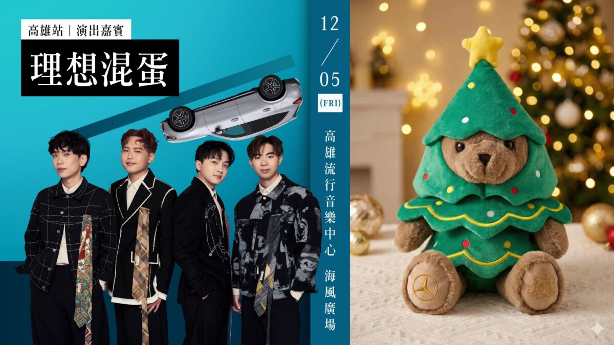 高雄站同樣匯聚三大亮點,而最大焦點莫過於現場舞台表演。台灣賓士此次特別邀請剛於台北小巨蛋完成專場演唱會,以真摯歌詞與清新旋律風靡年輕世代的超人氣樂團「理想混蛋」登台獻唱,將於12月5日晚間19:30至20:00帶來精華演出。