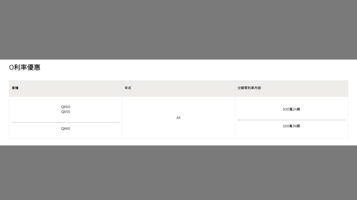 除了QX60調整售價之外,Infiniti亦同步推出購車方案,協助買家更輕鬆入主豪華 SUV。QX60現在購車可搭配150萬36期零利率,至於QX50與QX55則提供100萬24期零利率 優惠方案,讓想在年底添購豪華休旅的消費者擁有更多彈性選擇。