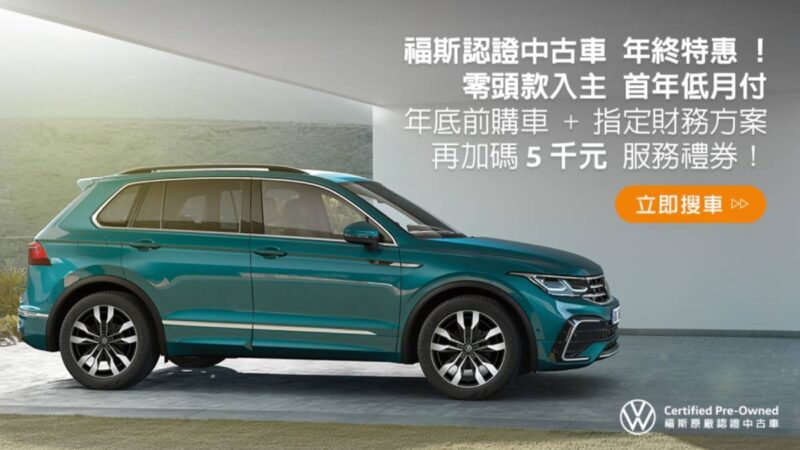 Certified Pre-Owned福斯原廠認證中古車秉持德國原廠標準,矢志帶給台灣消費者嚴謹專業的優質服務,所有車款皆經133項全面車況認證仔細篩選審核,公開透明刊載於官方網站,選購可靠又便利。此外,8大保證讓消費者從購車至售後皆能享有完善保障,建立值得信賴的中古車品牌首選。即日起年終特惠熱烈開跑,入主即享零頭款首年低月付優惠,年底前指定財務方案再獲5,000元服務禮券,歡迎前往授權展示中心鑑賞試乘,在新的一年與可靠的出行夥伴展開耀眼征途。