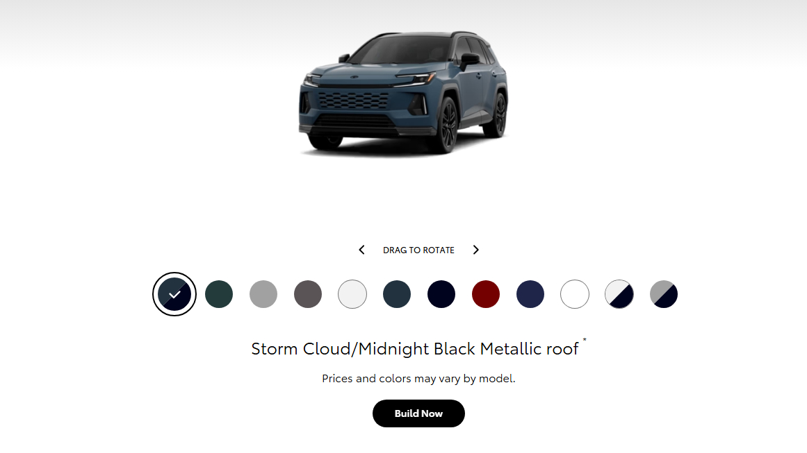 官網上同步揭露的,還有美規RAV4所提供的所有車色選擇,美規車型擁有多達12種的不同顏色,分別是單色:Everest、Meteor Shower、Urban Rock、Wind Chill Pearl、Storm Cloud、Midnight Black Metallic、Ruby Flare Pearl、Blueprint跟Ice Cap,並有雙色:Wind Chill Pearl配Midnight Black Metallic車頂、Meteor Shower搭Black車頂,以及Storm Cloud搭配Midnight Black Metallic車頂等配置。