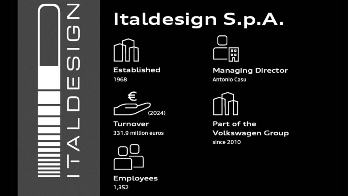 雖然Italdesign的品牌知名度不若Pininfarina或Zagato般廣為人知,但其作品卻深深影響汽車設計史,成立於1968年的Italdesign,出自設計大師Giorgetto Giugiaro之手,曾打造BMW M1、DMC 12、Lotus Esprit,以及第一代Volkswagen Golf、Jetta與Passat等經典車款,Volkswagen集團自2010年起透過Audi取得其控制性持股,Giugiaro本人則於2015年完全退出,另行創立GFG Style。
