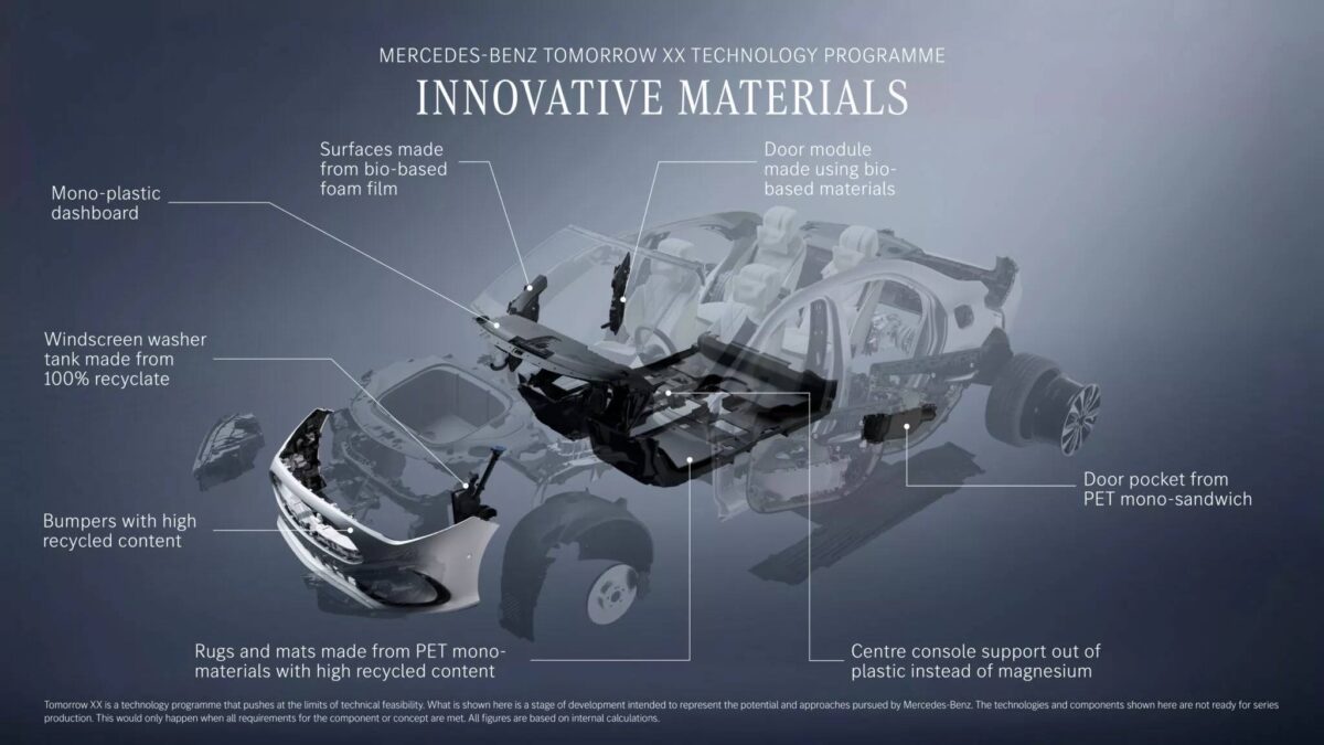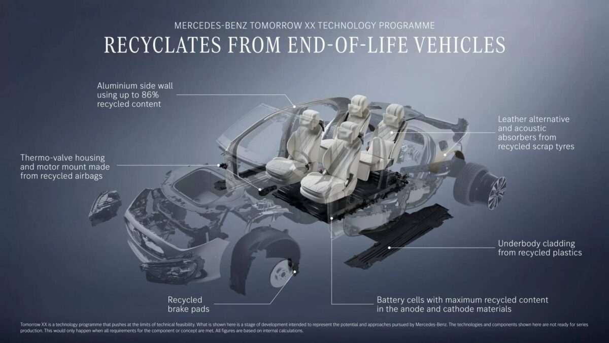 事實上,賓士已經開始把「回收再利用」落實到量產車上。即將登場的新世代CLA,擋風玻璃清洗液水箱已採用100%回收聚丙烯製成,保險桿中也含有約25%的再生材料。