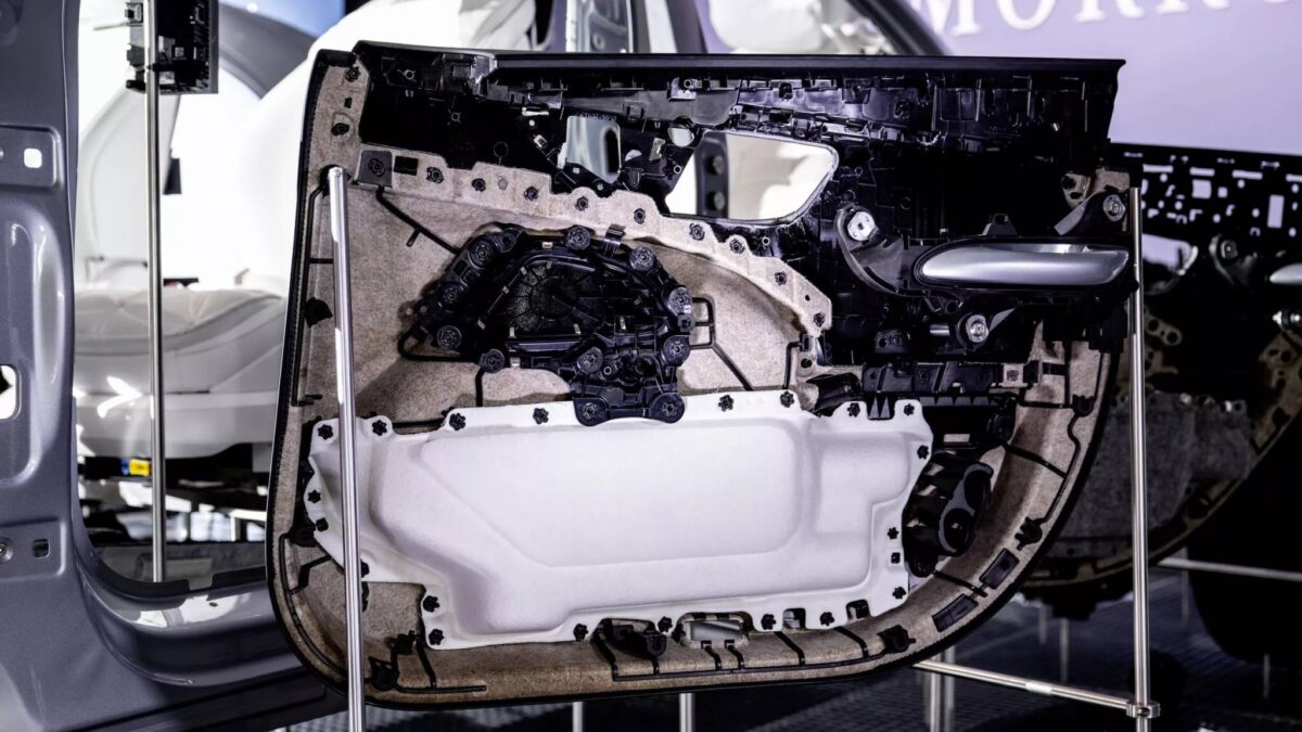 這套「回歸基本結構」的理念,並不只用在頭燈上。賓士也正在重新設計車內門板結構,計畫以可逆的熱塑性鉚釘,取代目前常見的超音波焊接方式。