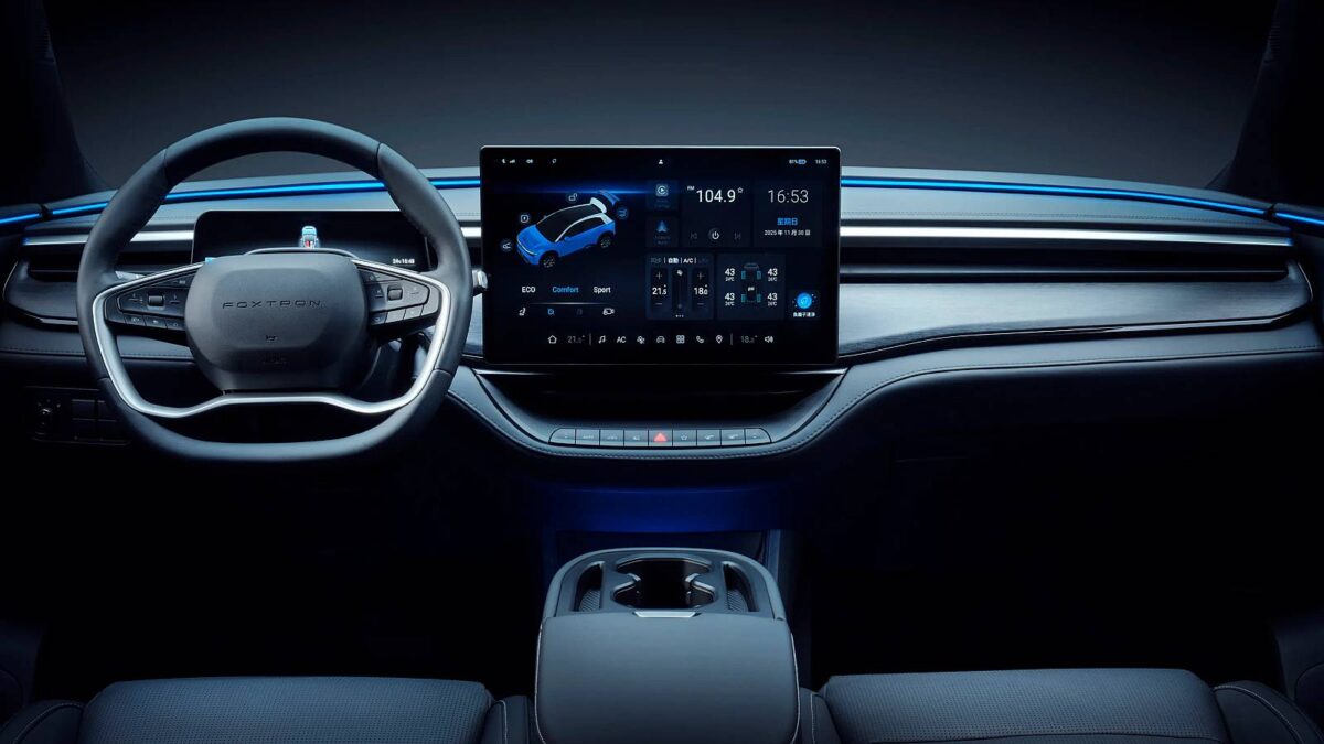 Foxtron Bria車長4,315mm、車寬1,885mm、車高1,535mm尺碼數據恰好落在B-Segment級距,採用時下流行的跨界設定,受惠於電動車平台,直接把軸距拉長至2,800mm,甚至比起多數C-Segment車款更為出色,有望同時兼顧市區穿梭靈活度以及車室空間機能。外觀則大量沿用先前鴻華先進Model B招商原型車元素,保有時尚與科技兼顧的外觀設計風格。同時,提供320公升至1,043公升不等行李廂容積,滿足消費者日常生活所需。