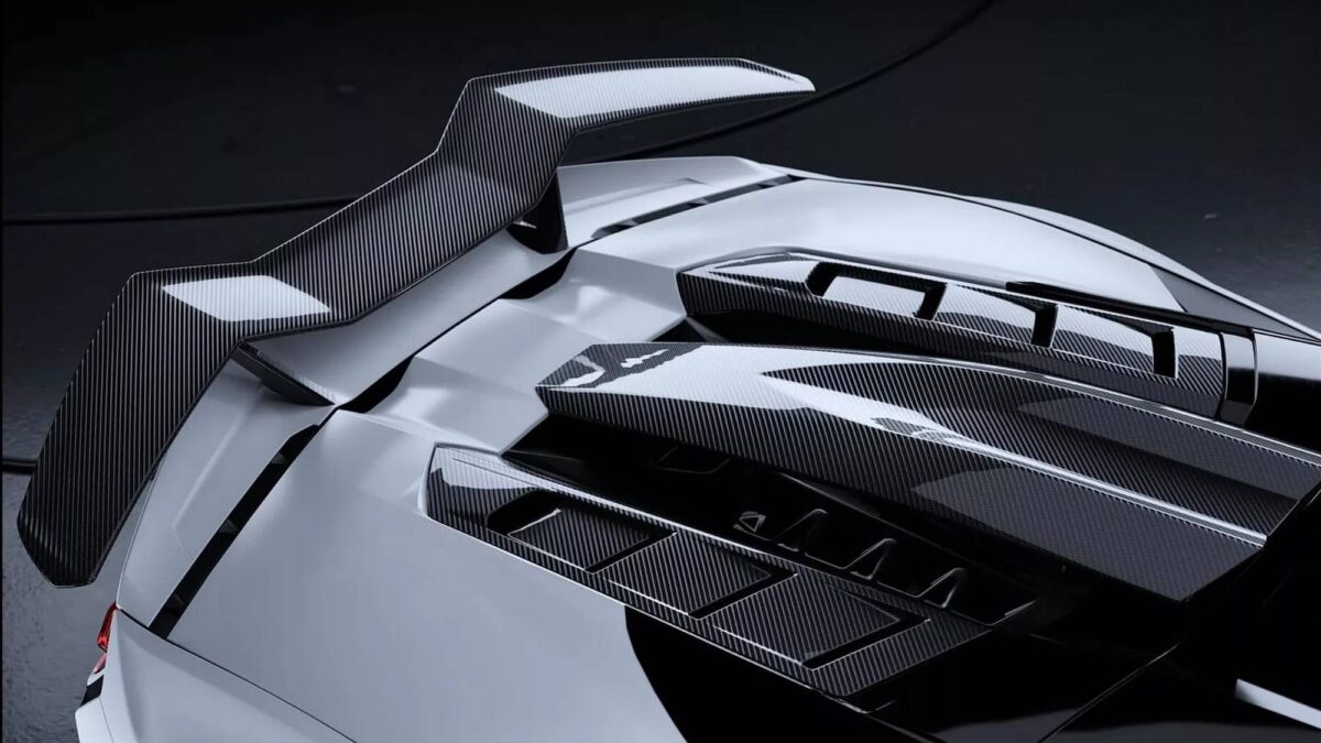 固定式大型尾翼成為最吸睛的焦點,其造型讓人聯想到Aventador SVJ與Gallardo Superleggera等經典車型。後保桿下方的分流器全面重新設計,靈感取自Huracán Tecnica,並透過更誇張的垂直鰭片強化競技感,車頂與引擎蓋區域也加入雙進氣口與碳纖維進氣導管,形成如同賽車般的車頂進氣設計,這項元素同樣呼應1016 Industries先前為Revuelto打造的改裝風格。此外,搭配的專屬空力取向鋁圈也讓整體造型更接近SEMA Show等改裝展會中的焦點作品。