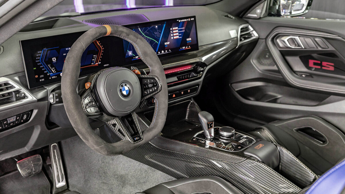 座艙配置延續賽道導向設計,標配Alcantara麂皮平底方向盤與M碳纖維飾板。科技配備導入懸浮式曲面螢幕與BMW Operating System 8.5系統,並針對駕駛需求配置M專屬操作介面。值得一提的是,M2 CS是首款搭載主動車距定速控制系統的CS車型,在維持高性能本質的同時,也兼顧了日常行駛的便利性。車室內同時配備harman/kardon高傳真音響、Comfort Access免鑰匙系統及數位鑰匙等實用科技,平衡運動性能與日常使用。