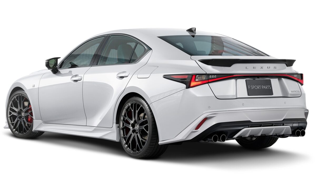 隨著小改款Lexus IS在日本開賣,豐田旗下TRD (Toyota Racing Development) 改裝品牌,也特別推出對應F Sport車型的空力套件、運動型排氣尾管以及底盤強化拉桿。其中空力套件包含前下擾流、側裙、後分流器與空力後視鏡蓋,同時後分流器可搭配四出設定的運動型排氣尾管,TRD強調加裝空力套件能減少車頭浮升,順暢地引導氣流往後流動,進而提升直線行駛時的穩定性,還能降低風切聲。