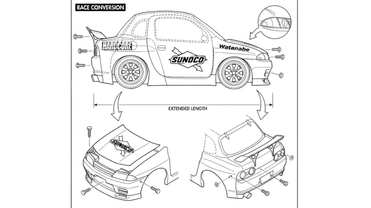 值得注意的是,這套R32 GT-R風格的寬體套件並非「即裝即走」,官方公開的設計資料顯示,實際施工過程需要對原車車體進行大幅切割,包含內輪拱重製與車身結構調整,原本的車長也經過延伸,以更符合R32的外觀比例。