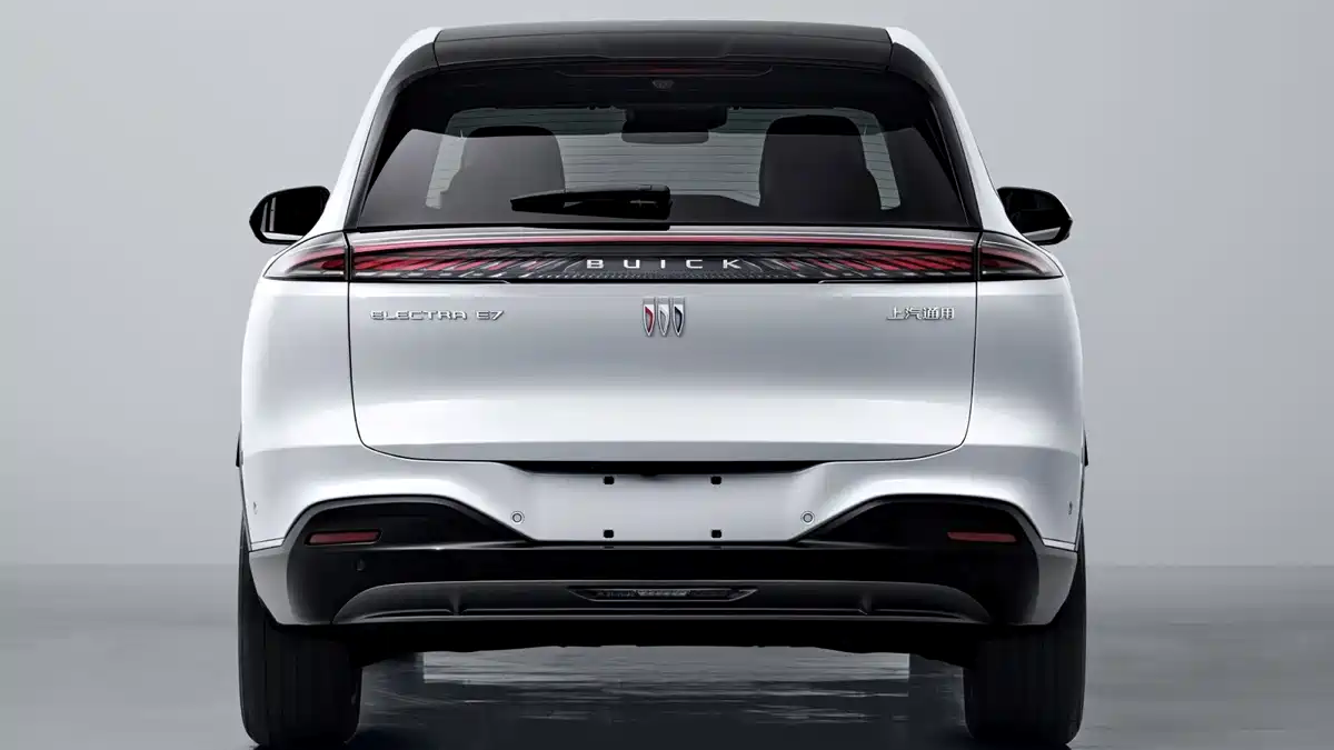 Electra E7車長4,850mm、車寬1,910mm、車高1,671mm與軸距2,850mm尺碼比Envision (昂科威) 更大,並在設計上採取與Buick家族過去截然不同的風格,甚至被外界評論有幾分神似Toyota。車頭以銳利的鯊魚鼻造型,搭配C字形的日行燈組與分離式頭燈,下方則整合了疑似具備主動開閉功能的進氣格柵,營造出強烈的科技感。車身側面線條流暢,輪拱與側裙處輔以防刮材質飾板,並提供18至20吋的低風阻輪圈選配。車尾部分則以簡潔為主,貫穿式尾燈組內部融入Buick字樣,結合車頂擾流板與立體後保險桿,提升車輛的辨識度。