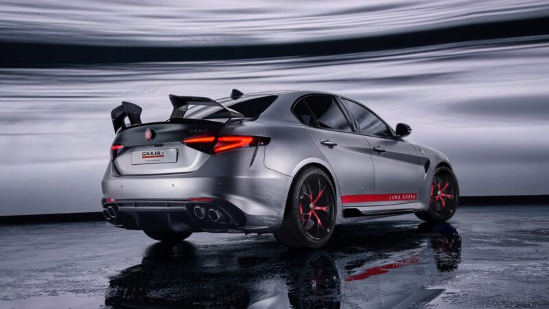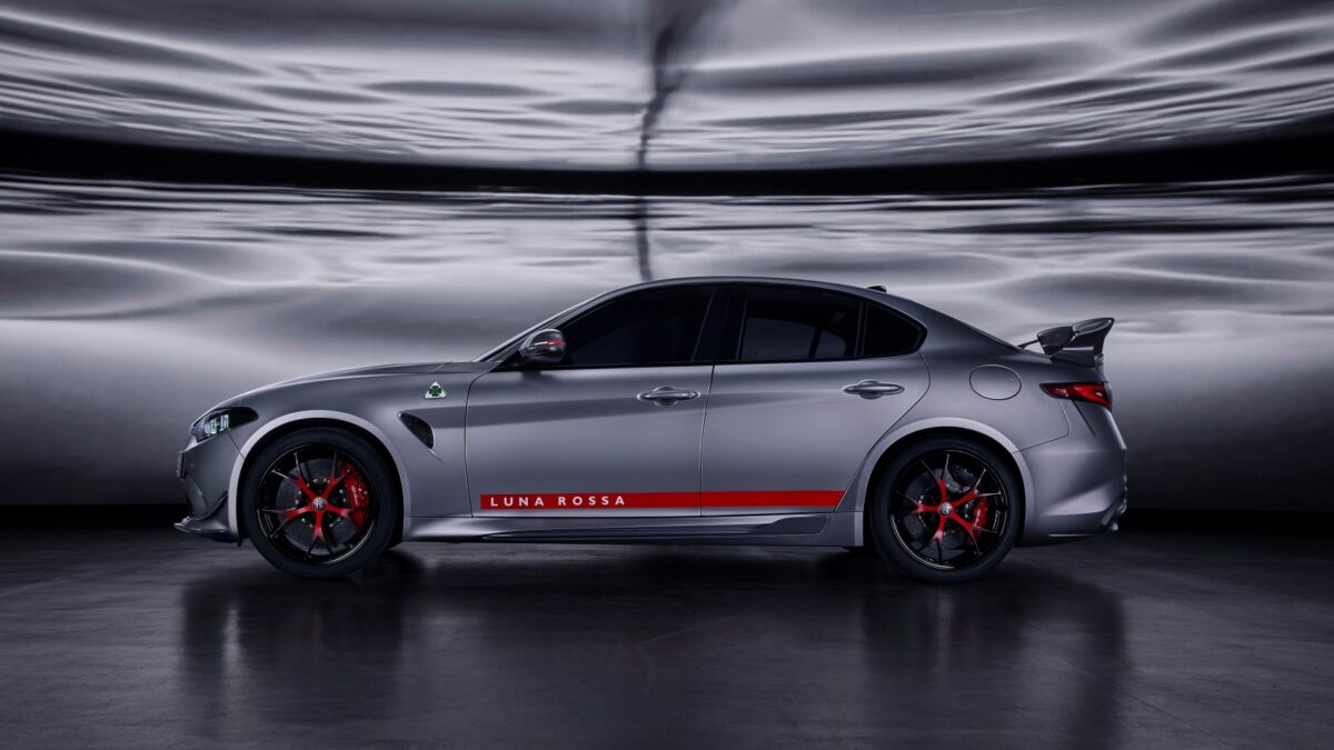 除了大幅強化空力設計,Giulia Quadrifoglio Luna Rossa外觀還有許多亮點,像是車色採珠光烤漆、從水箱護罩延伸到引擎蓋的黑色塗裝呼應甲板造型、車側帶有跟賽艇一樣的Luna Rossa紅色飾條、紅黑雙色漸層輪圈以及經典回歸的紅色廠徽。另外原廠也準備了重量更輕、聲浪更激情的Akrapovič鈦合金排氣系統,意圖營造出更加熱血的駕駛氛圍。