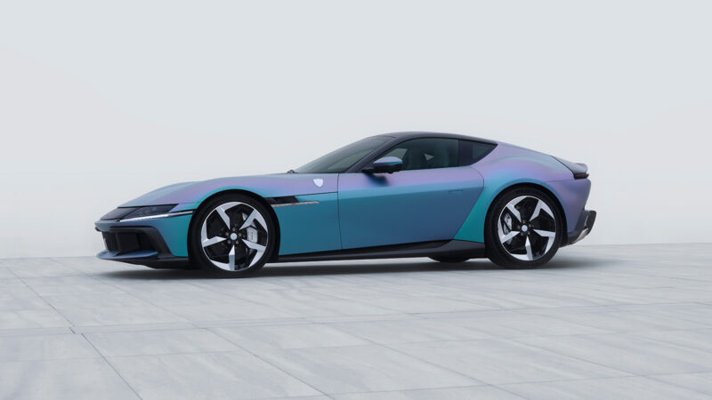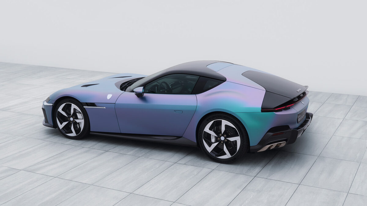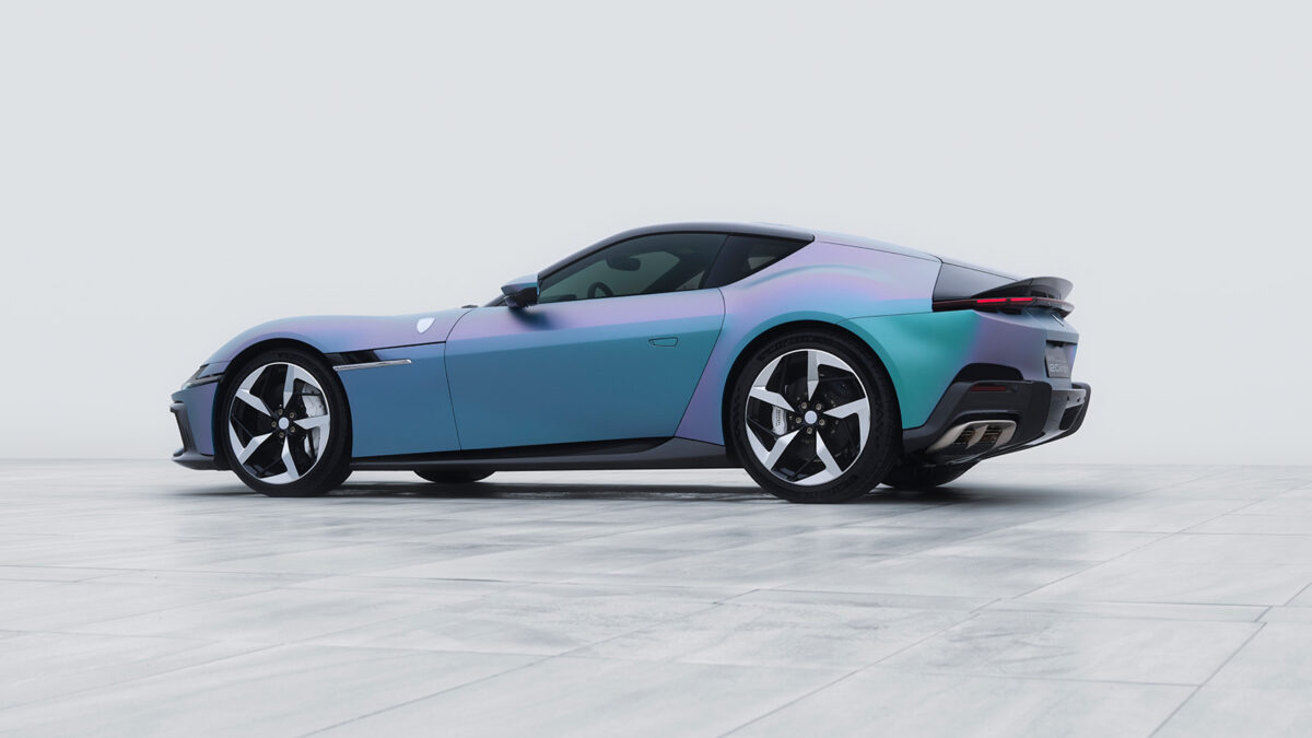 外觀最吸睛的,莫過於全新開發的「Yoonseul」漸層車色。Ferrari表示,這套塗裝以韓國傳統意象為出發,揉合青瓷的多層次綠色調,同時取材自首爾的都會能量——K-pop、電子音樂與霓虹光影。最終呈現出一種會隨光線變化的虹彩質感,色澤從綠轉紫,並帶有藍色高光,呼應海面日光閃爍的Yoonseul意境。