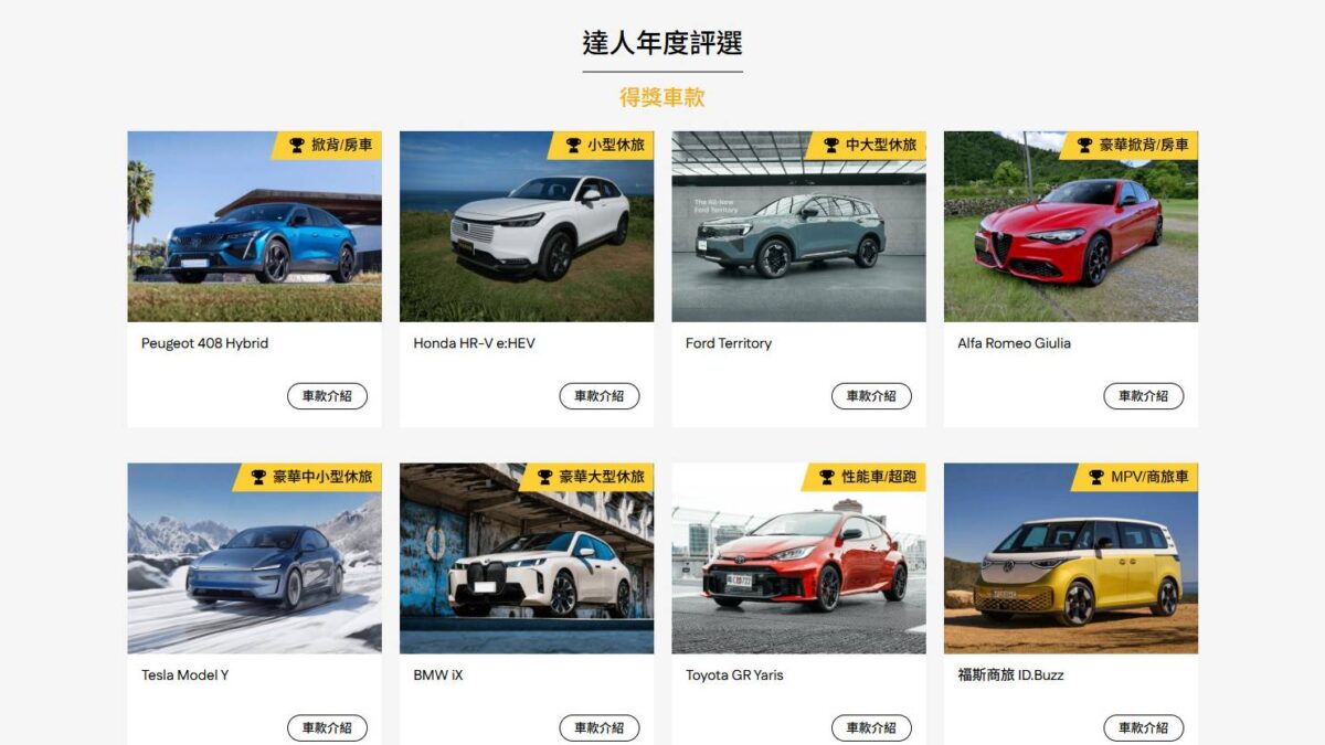 從油電混合、純電休旅到性能鋼砲與電動商旅,今年得獎名單也清楚呈現出市場「電動化、多元化、性能化」並進的趨勢。
