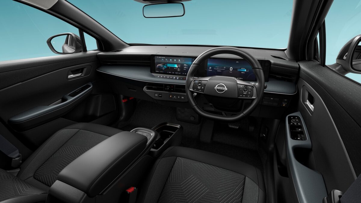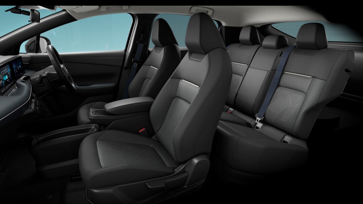 相較於B7等級車型提供白色/藍紫色、灰色/藍灰色混搭的雙色內裝,B5等級車型則是以黑色/深灰色為主,再搭配藍色安全帶、藍色飾板來加以點綴,座椅採織布材質結合幾何條紋,數位儀表與中控螢幕皆為12.3吋。