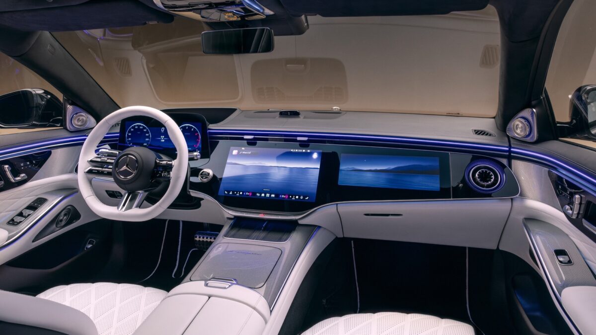 座艙科技全面導入品牌最新主打的MB.OS超級電腦架構,將車內所有系統整合為單一智慧生態系統。標配MBUX超級螢幕與最新一代MBUX系統,並搭載具備自然對話能力的「Hey Mercedes」AI 虛擬助理。14.4吋中央顯示器與12.3吋副駕顯示器整合於一整塊玻璃面板之下,呈現宛如雕塑般的科技視覺張力。