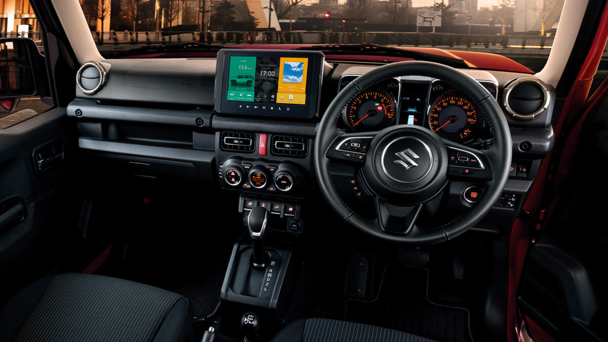 座艙鋪陳上,Jimny Nomade則把車內照明改為LED燈組,同時儀錶板中央的液晶顯示器也從單色改為彩色,再者後座也新增安全帶提醒功能,駕駛座則在方向盤周圍加入免持開關 (如電話、音量調整等)。另外原廠也額外給出選配項目,消費者能加價選擇倒車顯影、9吋車機、GPS跟車聯網系統等配備。