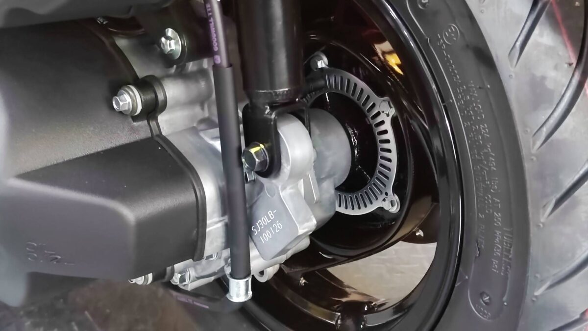 如今,Kymco決定將這款「旗艦國民車」的安全等級再提升,為K1 150導入ABS剎車系統,車型代號為SJ30LB(未配備ABS的是SL30LA)。由於配備ABS關係,因此,龍頭下方的前置物空間被壓縮,無法塞進一杯700c.c.飲料,主要變成放手機的置物槽。
