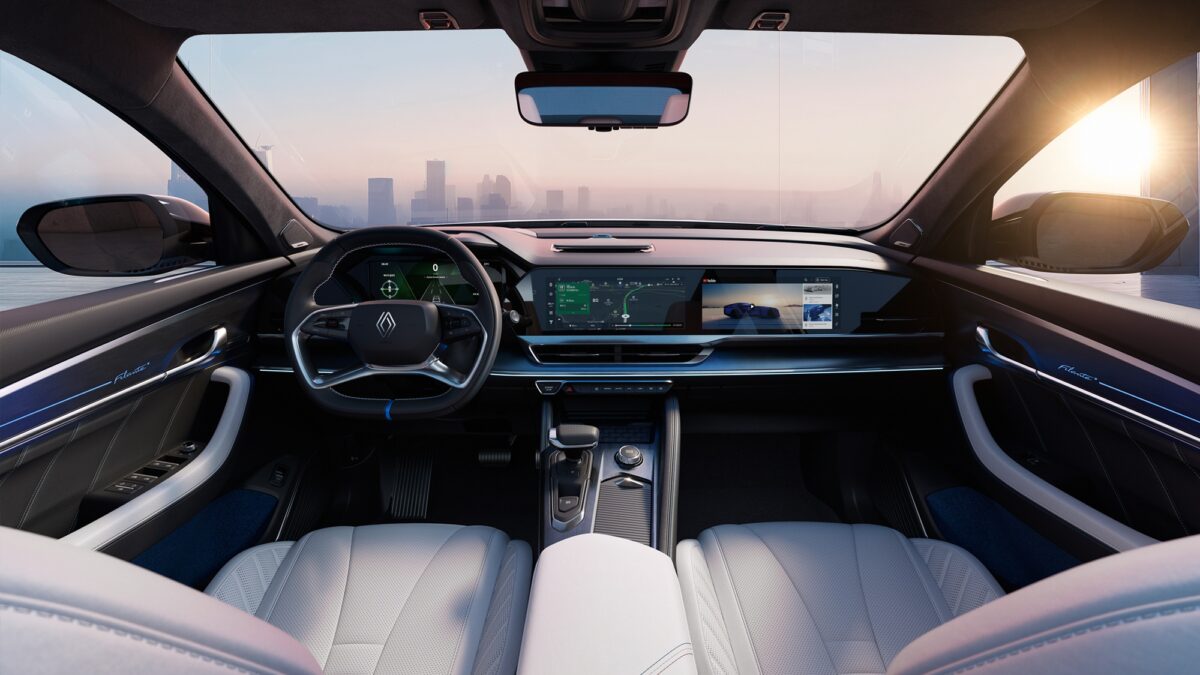 進入車內,Filante最引人注目的,是由三具12.3吋螢幕所組成的「OpenR Panorama Screen」,橫跨整個儀表台,搭配25.6吋擴增實境抬頭顯示器,營造出極具未來感的數位駕駛環境,系統採用Google Android架構,支援最新連網與應用服務,並可透過My Renault App進行遠端車輛控制。