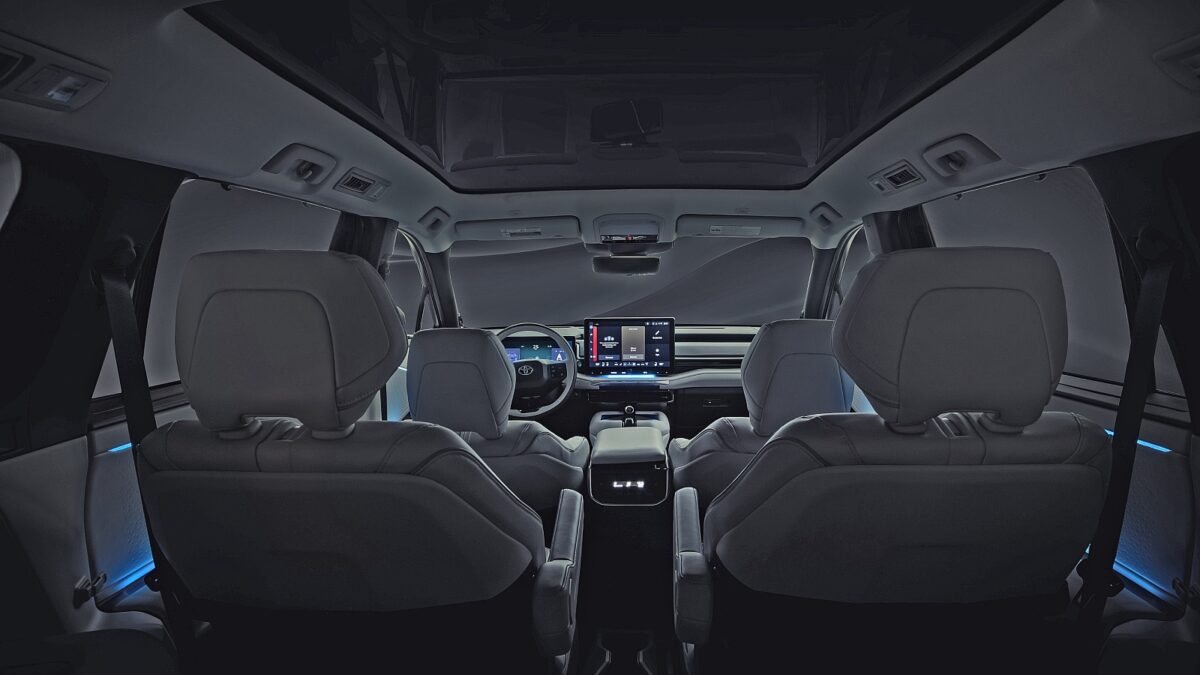 Toyota這次釋出的內裝預告圖還曝光這款三排座新車第二排座椅將會採用獨立的艦長席配置,且將後座空調出風口設置在車頂位置,搭配三區恆溫空調、後窗遮陽簾等,能給予更出色的冷房效果。不僅如此,Toyota還會提供全景玻璃車頂選項,有助於進一步提升車內空間寬敞感,給予更出色的乘坐舒適度。而且,從目前曝光的預覽圖,全景玻璃車頂可能會導入電子控制薄膜,具有類似Lexus RZ天窗的一鍵霧化功能。
