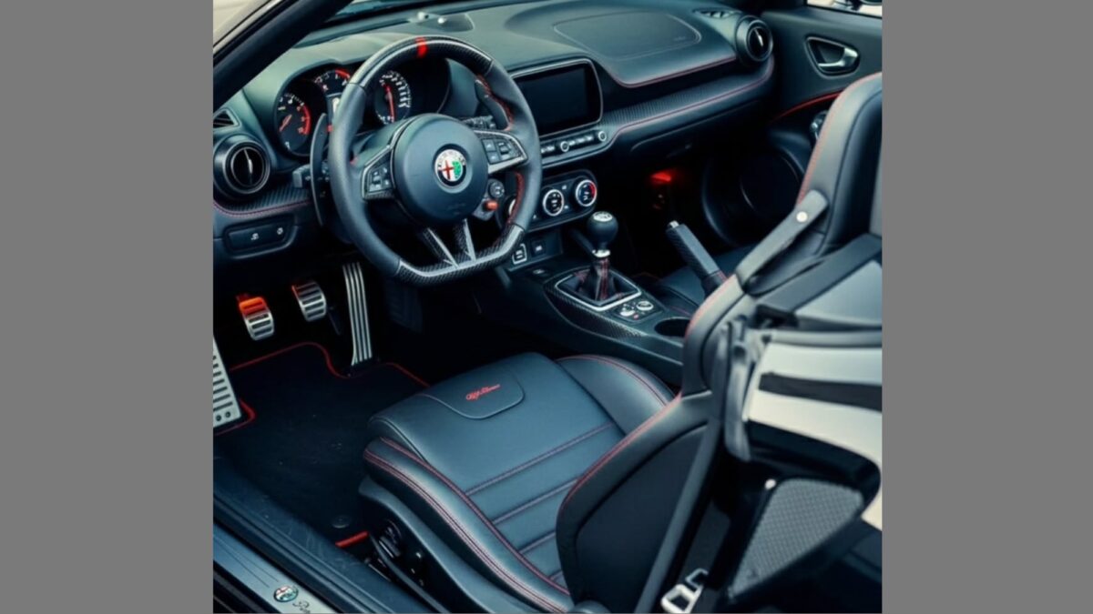 座艙部分,設計同樣以戰鬥感為核心。緊湊的駕駛艙配置,碳纖維方向盤營造出強烈性能氛圍,三踏板配置暗示著手排變速箱的存在,但方向盤後方卻又出現換檔撥片,形成耐人尋味的衝突感。雙前座跑車座椅看似採用皮質包覆,在性能取向之餘,仍保留一定程度的豪華質感。這些充滿想像的設計,或許無法代表Alfa Romeo的實際產品規劃,但至少在官方沉默的空窗期,替熱情的車迷帶來些許慰藉。