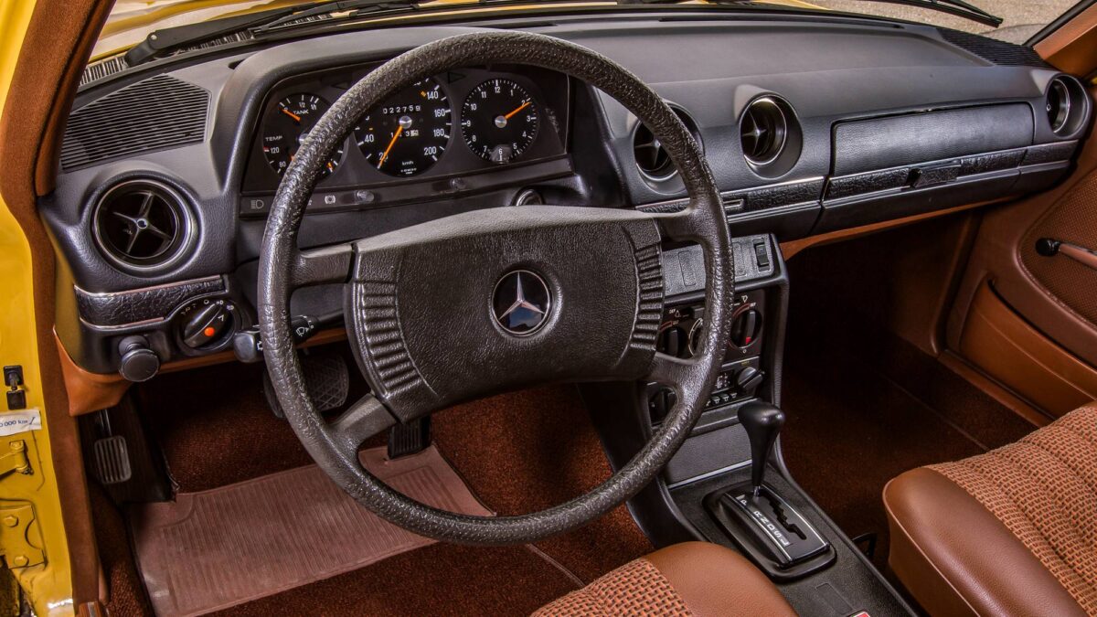 此外,還有長軸距房車V123,以及供救護車、靈車等特殊用途的F123底盤版本。動力編成同樣廣泛,從耐用聞名、深受計程車市場青睞的200D與240D,到技術先進的300D渦輪柴油,再到搭載直列6缸汽油引擎、性能與順暢度兼備的280E,整個車系共提供多達11款引擎選項,橫跨直4、直5與直6,汽油與柴油並行,展現Mercedes-Benz在不同市場與法規條件下的高度適應能力。