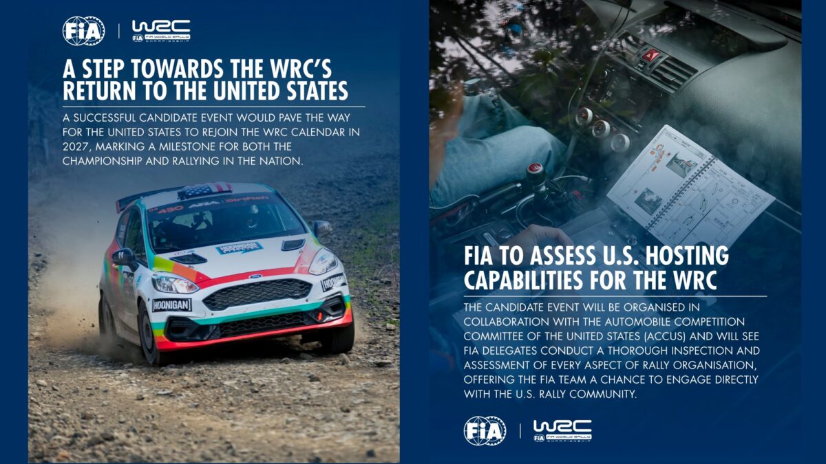 根據FIA與WRC方面近日釋出的多項資訊,美國已被列為2027年WRC賽曆的潛在候選國家,並且確定將於2026年6月11日至17日舉辦一場「Candidate Event候選測試賽事」,作為是否納入正式分站的關鍵評估依據。