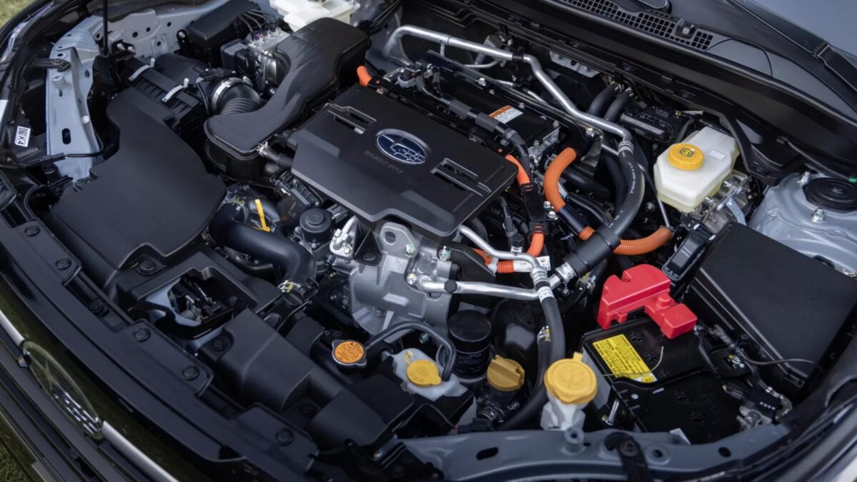 根據原廠公布的規格數據,Forester Hybrid搭載由2.5升水平對臥四缸自然進氣引擎與發電用馬達、驅動馬達共同組成的Strong Hybrid油電複合動力系統,引擎最大輸出設定在165匹、21.6公斤米,加上馬達輸出綜效馬力達到194匹,並保留對稱式四輪驅動系統,純電行駛時也能保持四輪驅動,依據EPA測試標準一桶油可連續行駛581英里 (約935公里),相較於汽油版車型更能同時兼顧性能與節能表現。