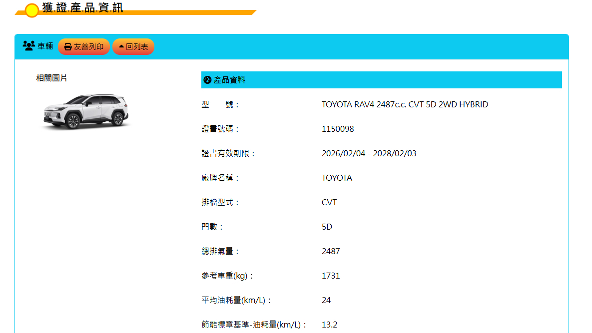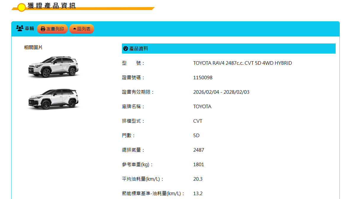 大改款Toyota RAV4已經在1月時候正式上市,有別於過去提供汽油、油電的動力選擇,第6代車系全部換成2.5升Hybrid油電動力來溝通,但在驅動方式上仍有提供前驅、四驅兩種版本,滿足不同取向的消費族群。而在油耗表現上,新世代RAV4同樣擁有不俗成績,四驅版達20.3km/L,前驅版本更是高達24.0km/L。如今這項成績獲得政府認證,RAV4獲頒經濟部能源署「節能標章」,成為政府認證的省油車款。