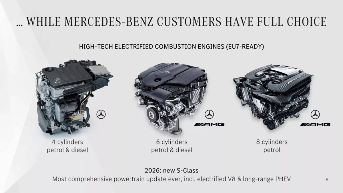 如果把時間拉長來看,賓士規劃在2026年推出16款車、2027年再推出14款,兩年合計30款新作,含全新、改款與衍生車型。而從簡報內容來看,賓士仍會走「電動+燃油」雙線並行,像是2026年的16款車中,有6款是純電車,其餘仍為燃油車。