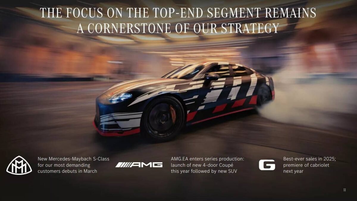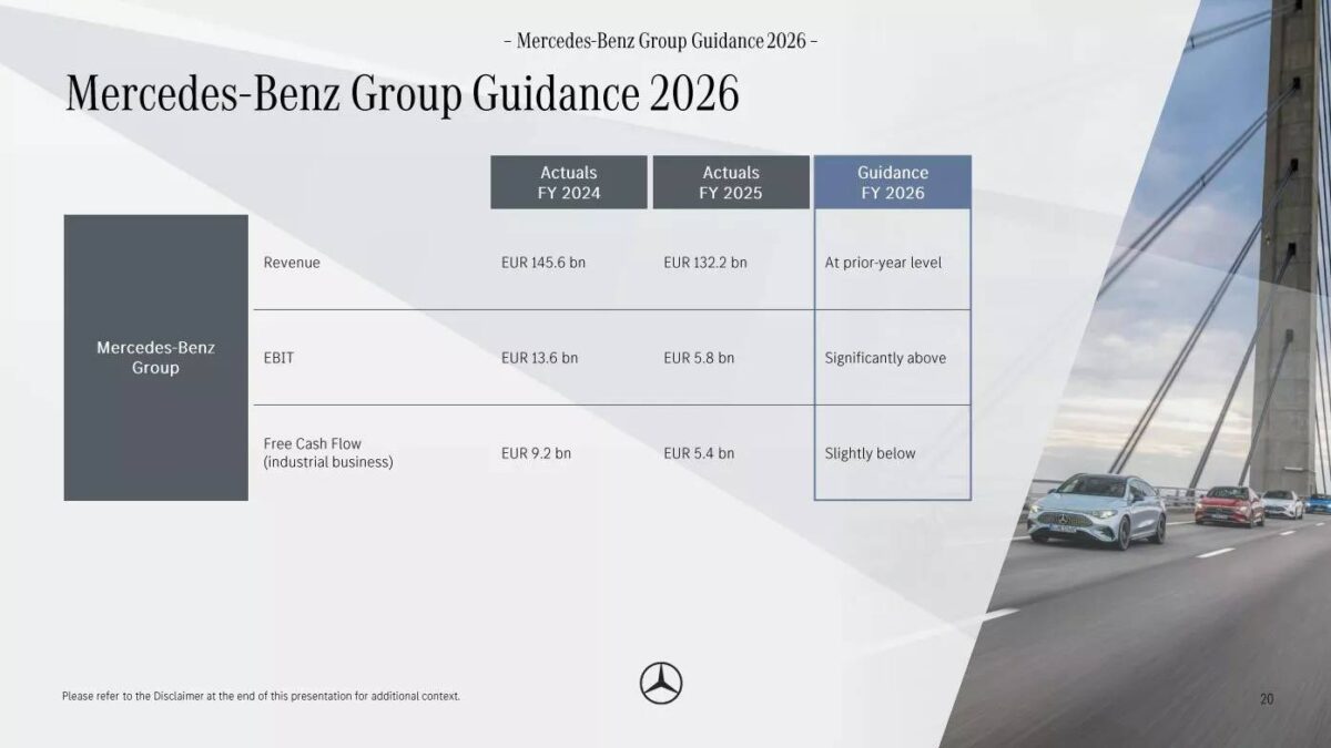 新品攻勢背後,其實也有經營壓力。賓士在同一場場合提到,調整後EBIT息税前利(Earnings Before Interest and Taxes,用以衡量公司的獲利指標)從2024年的137億歐元下滑到2025年的82億歐元,並把原因指向中國市場挑戰、關稅與匯率逆風等;同時,公司提出的股利也低於前一年。