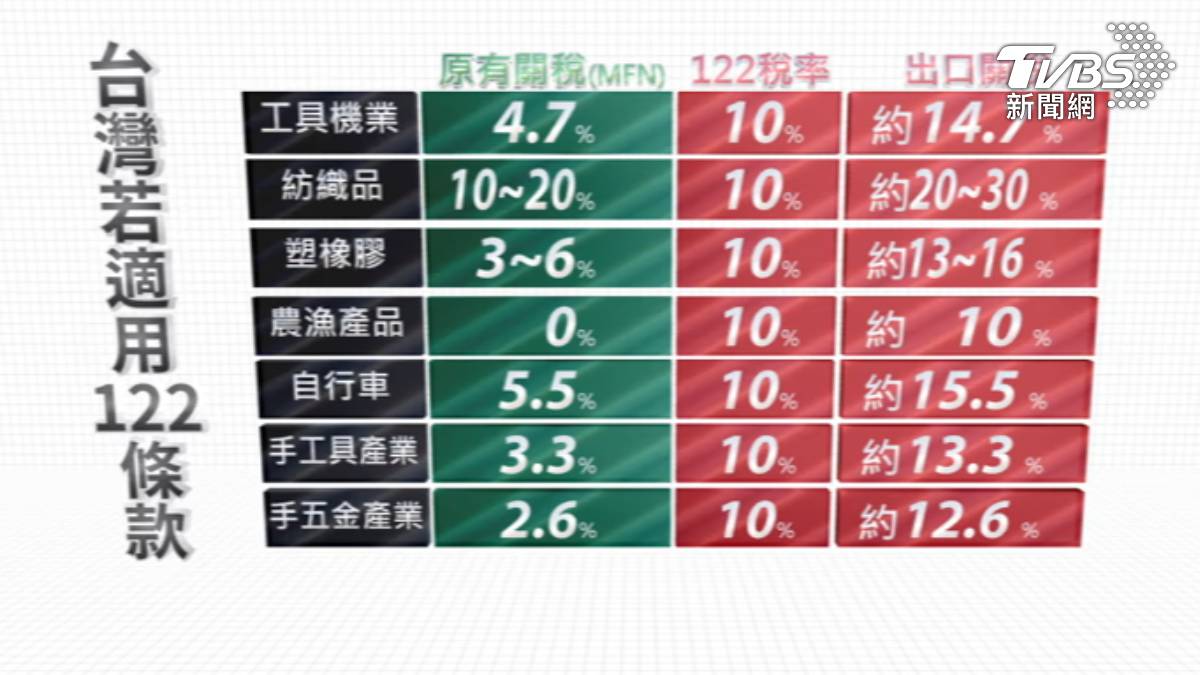 在「10%全球關稅」框架下,台灣部分產業開始試算稅率變化。例如工具機、塑膠、紡織等原本即有不同基礎稅率者,若再疊加 10%,可能直接影響報價競爭力;也有產業界憂心,若台美先前談定的條件出現變數,原本爭取到的「相對公平」優勢可能被稀釋,迫使供應鏈與接單策略再洗牌一次。