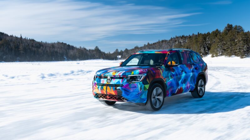 在魁北克冰湖上進行的測試,由原廠安排專業駕駛於封閉場地操作,並強調「專業駕駛於封閉場地示範,請勿模仿」L同時也提醒消費者,冬季行駛時務必配備適當的四季胎或雪胎,並依天候、能見度與路況審慎駕駛。此次測試車輛皆覆蓋彩色偽裝貼膜,但Volkswagen已向外媒證實,除了車頂之外,2027年式Atlas其餘鈑件皆為全新設計,儘管車身尺碼與軸距與現行車型相近,但整體結構與平台全面更新,象徵這款自2017年問世、歷經2021與2024年改款的三排SUV,正式邁入第二世代。