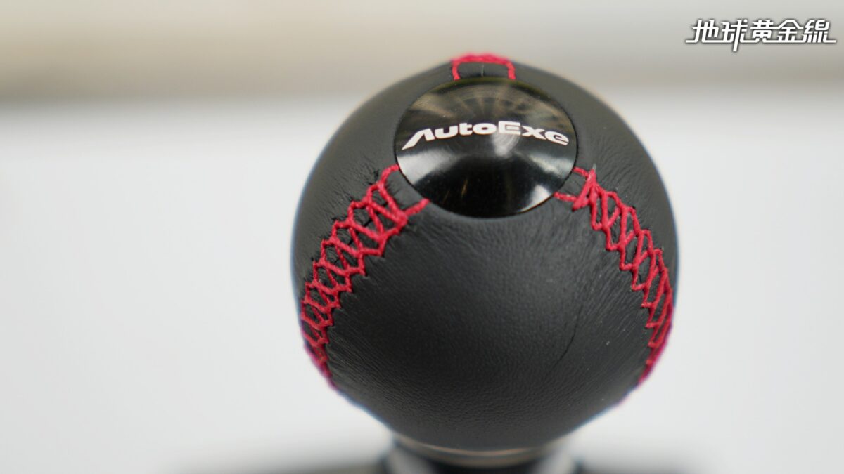 與方向盤相呼應的是AutoExe真皮球型排檔頭,黑色真皮包覆圓潤本體,輔以職人手工紅色縫線與頂部雷射雕刻銘版,細節處展現品牌對質感的講究。其符合人體工學的掌心包覆設計,搭配按壓式換檔機構,使每一次入檔動作更為順暢俐落,讓駕駛與機械之間的互動更直接、更純粹。