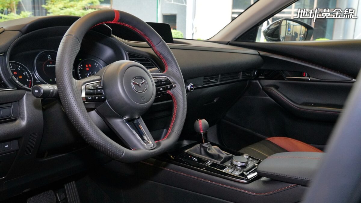 平底化造型不僅營造濃厚競技氣息,同時優化腿部空間與上下車便利性;盤徑亦經過細部調整,盤寬減少7mm、盤高減少9mm,帶來更俐落直接的轉向反應。中央鮮明的紅色定位標記與紅色縫線,則為座艙注入濃烈戰鬥氛圍,呼應「焔」之名。