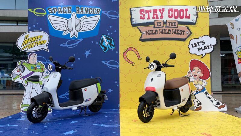 此次聯名以《玩具總動員》兩大人氣角色為設計靈魂「巴斯光年」與「翠絲」,分別打造「浩瀚宇宙號」與「歡樂牛仔號」兩款主題車型,將動畫中的冒險精神與童趣元素融入車款設計,讓騎士在城市街道間也能重拾童心。