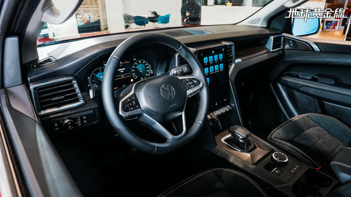 Amarok Style車內維持12.3吋全數位虛擬儀錶板、中央12吋直立式觸控螢幕等數位化佈局,方向盤、排檔桿樣式也與Amarok PanAmericana相同,但Amarok Style座椅改用ArtVelours絲絨材質包覆展現不同的內裝視覺感受。而且,整體配備水準並未大幅調整,雙區恆溫空調、後座電源輸出插座、智慧型手機無線充電裝置,還有Harman Kardon音響等,仍舊是標準配備。僅有取消前乘客座電動調整座椅,只留下駕駛座10向電動調整功能。