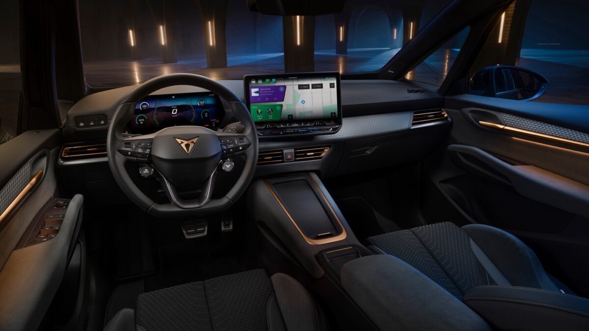車室材質與氛圍也有所提升,例如新式門板採用更高質感材質,包括麂皮裝飾與軟質塑料,前門上方也改用柔軟觸感材質。此外四個車門的把手均加入照明設計,提升夜間辨識度,座椅部分全面採用桶型座椅設計,並可選用由回收材料製成的Seaqual Yarn或Dinamica織物,車內依舊保留Cupra標誌性的銅色飾條與環艙氣氛燈,並新增動態燈光效果,用於強化警示提示。