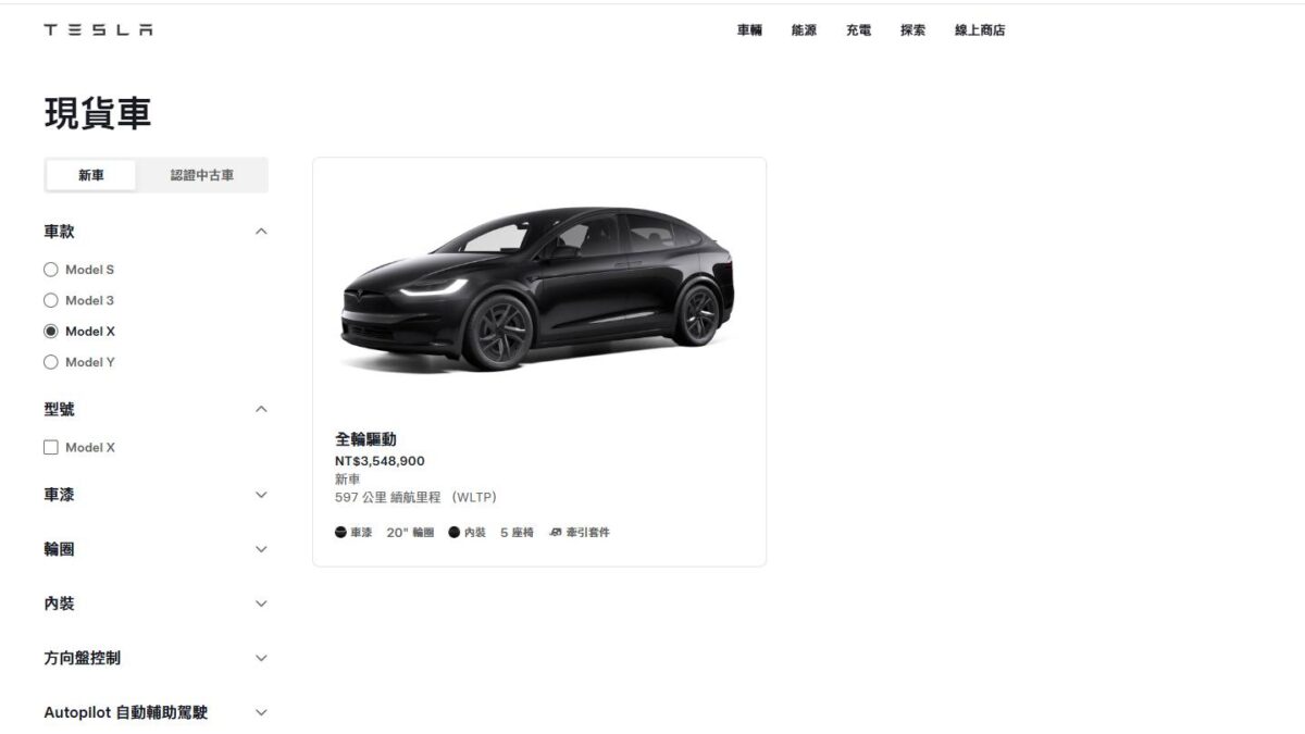 從台灣特斯拉官網可見,Model S與Model X雖仍保留產品頁面,但已無新車訂購入口。其中Model S庫存幾乎售罄,而Model X則僅剩少量現車,整體銷售策略明顯轉為「清庫存」模式。
