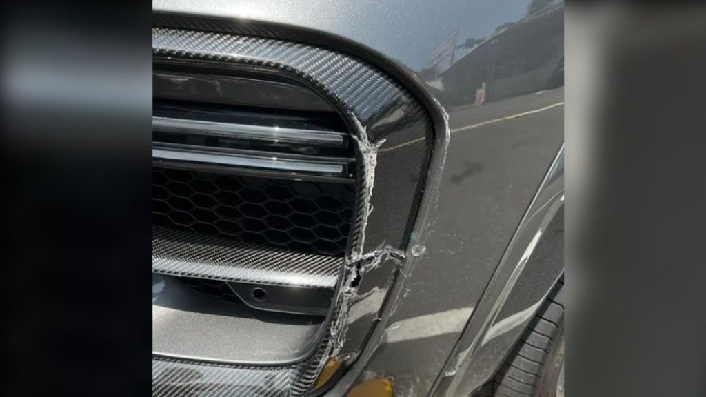 更讓王陽明憤怒的是,對方沒留下任何聯絡資訊就肇事逃逸,因而在社群平台上爆粗口痛罵,很想知道到底是誰幹的!雖然王陽明表示不幸中的大幸是前保險桿沒事,不過,依照碳纖維套件須換新,還有保險桿要烤漆的話,粗估一、兩萬元跑不掉。