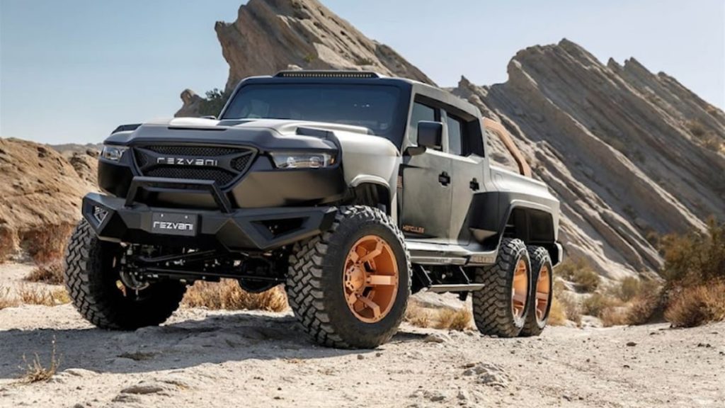 位在美國加州的Rezvani過去以打造高性能跑車聞名,但他們也可以透過Wrangler進行重大改裝,變成一輛驚人的六輪怪物,而且購買者可以選擇使用3.6升V6的500匹動力心臟,或是直接升級成6.4升V8引擎,或是你的錢更多一點可以變成7.0升V8動力,驚人的1,300匹馬力讓你的6X6擁有狂暴加速體驗,更甚者還可以升級成防彈版本,除了玻璃以及鈑金都防彈之外,輪胎也會變成軍用等級,讓人感到非常安全。