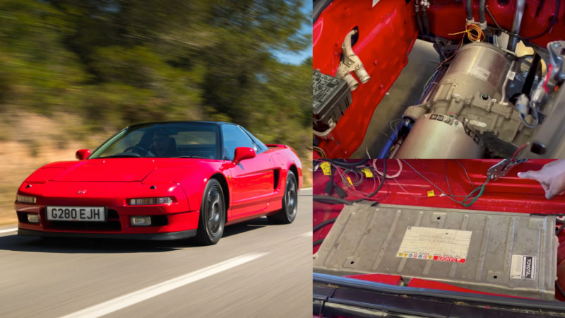 撇除引擎的部分,其實這輛NSX的車況還算可以,內裝也相當完整,只不過Jeff竟然用玩具車的排檔桿來進行檔位切換,這點實在有點太過惡搞。而在影片的最後,Jeff也更新了愛車的改造進度,目前這輛電動NSX在裝上了來自克萊斯勒Pacifica油電車的電池後,已經可以進行正常加速動作。