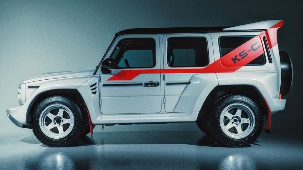 Khyzyl Saleem以G-Class為基結合了眾多Mitsubishi Pajero Evoultion的元素,賦予這台車更多源自日系車的細節,也讓整台車看起來更加有趣。從車頭部分我們可以見到來自Mitsubishi Pajero Evoultion的引擎蓋散熱孔,甚至就連前保桿突起的輪廓也是如出一徹。中央也有配置金屬引擎下護板,看起來格外有越野氣息。