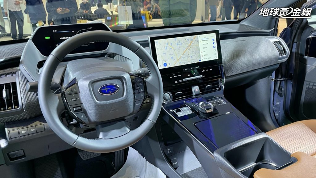 坐進Solterra的車內,可以見到中央有12.3吋液晶螢幕,這組螢幕可以用來顯示Appla CarPlay以及Android Auto,儀表板則是採用7吋的數位儀表用來整合多方行車資訊。值得一提的是,在中控台中央可以見到排檔轉盤以及X-Mode的模式切換按鍵。透過這組按鍵可以用來操縱,SAWD對稱式全時四輪驅動,提供更好的地形穿越能力。此外,車頂上兩片天窗也是Solterra的專屬配備,如此一來能提供更好的採光以及視野表現。