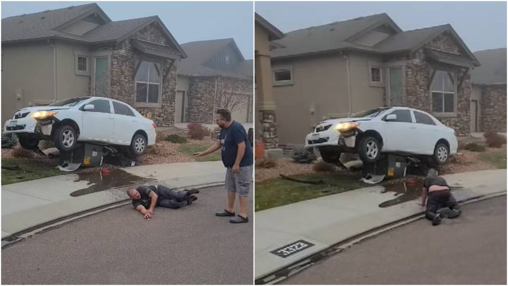 電影《醉後大丈夫》述說一名準新郎與三名好友到拉斯維加斯為準新郎舉辦最後一次男性單身派對,卻由於狂歡酗酒過度,而發生各式各樣鬧劇。日前在美國科羅拉多,就有一名醉漢彷彿活生生上演「醉後大丈夫」的行為,在開著Toyota Corolla發生車禍後,一直在愛車旁邊做出各種脫序行徑。