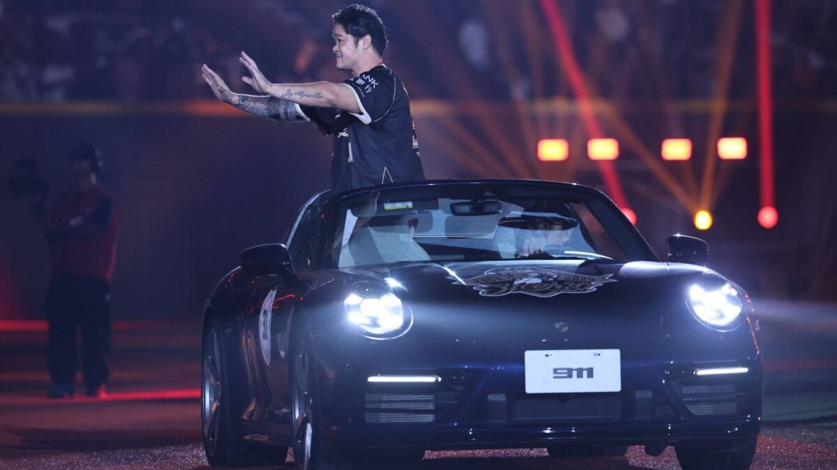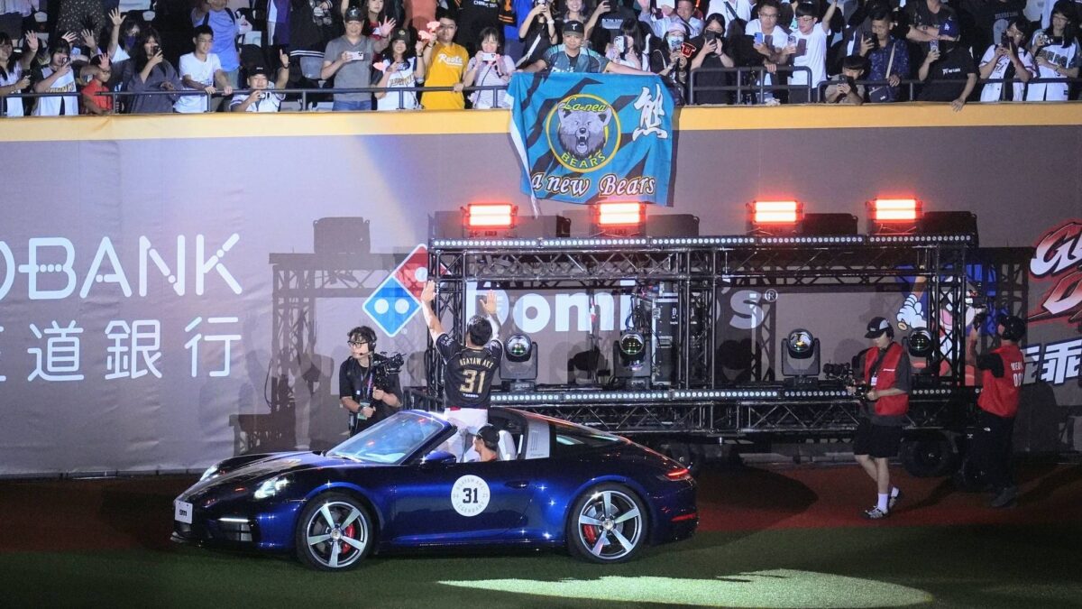 舉例來說,先前「周董」周思齊最後的巡場道別,是由他曾經代言過的Volvo品牌,出動C40 Recharge與V90 Cross Country來繞場;「嘟嘟」潘威倫則是搭Hyundai Santa Fe。這回「大師兄」林智勝的繞場,出動的是售價逼近千萬元的Porsche 911 Targa!