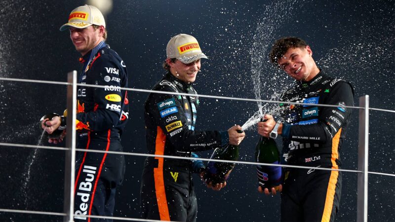 McLaren雖在新加坡提前鎖定車隊冠軍,但在卡達策略失誤和拉斯維加斯雙車失格後,車手冠軍卻陷入危機。Norris連勝墨西哥與巴西後重新掌控局勢,雖然最終戰仍受到Piastri與Leclerc強勢壓迫,但他在阿布達比以冷靜與耐心守住頒獎台位置,終於在第七個F1賽季拿下冠軍。