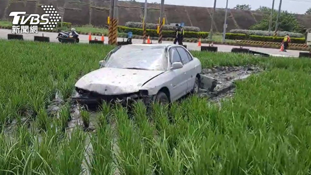 這起案件發生在苑裡鎮苗140線與北提東路口,當時吳男開車沿北提東路匝道、由南往北行駛,因不明原因衝撞路邊石墩護欄,整車浸泡在田裡,前、後保險桿幾乎被撞斷,吳男全身多處擦挫傷,救護人員獲報後,緊急到場檢傷,將其送往大甲光田醫院治療。
