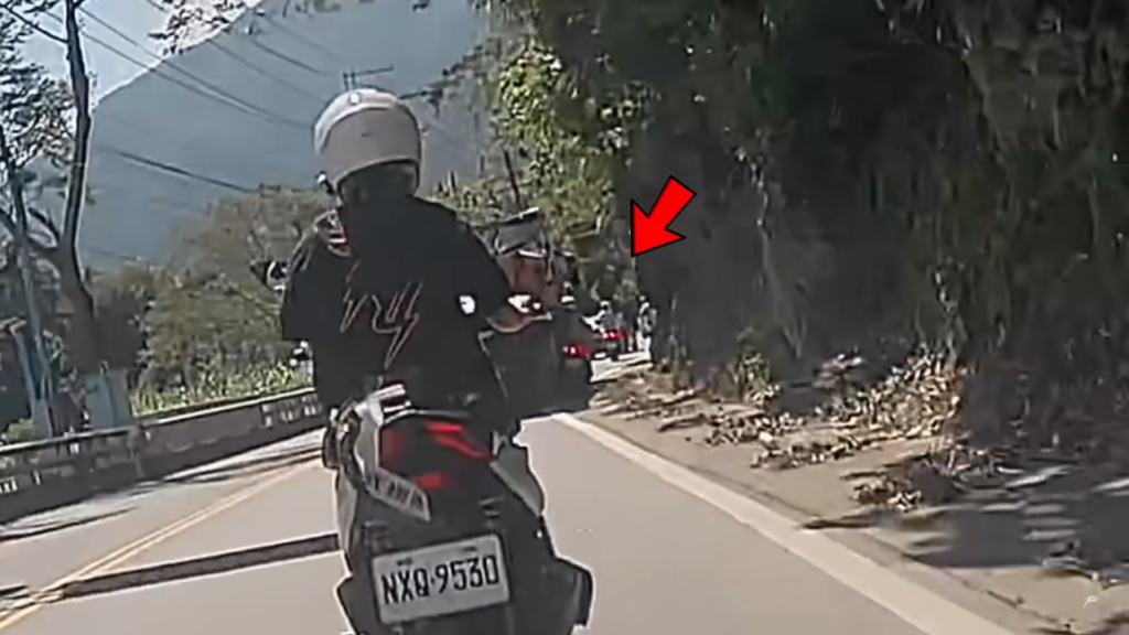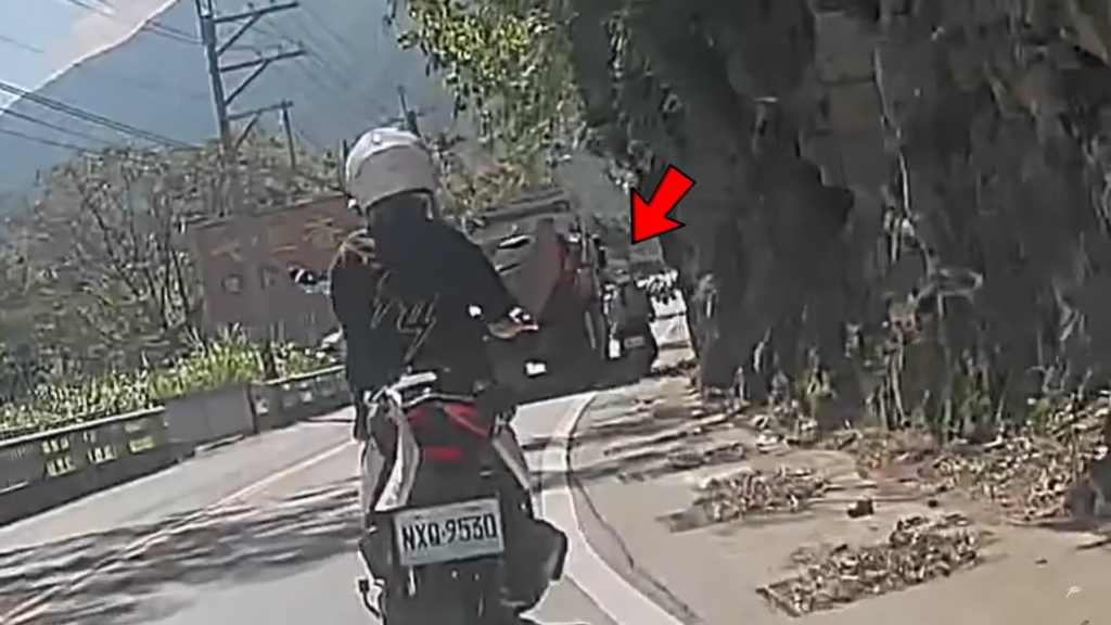 險象環生的過程全部都被行車紀錄器所錄下。根據儒哥提供的影片,一開始砂石車就在雙黃線來回壓線,但是前方正巧是塞車狀態,車流只能緩慢前進,沒想到砂石車選擇轉彎處貼著機車超車,又跨越雙黃線超車,再度逼迫前方機車讓道。之後最危險的狀況是,砂石車駕駛竟將機車硬撞進路肩的水溝蓋上,嚇得儒哥一行人冷汗直流。